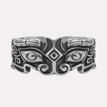 Aegis, legendarna tarcza bogów, miała ponoć nosić spojrzenie samej potęgi – symbol ochrony, któremu nikt nie mógł się oprzeć. Ten pierścień oddaje tę esencję, z przenikliwymi oczami wyrzeźbionymi na masywnej obrączce, czuwającymi nad noszącym z niezłomną czujnością.