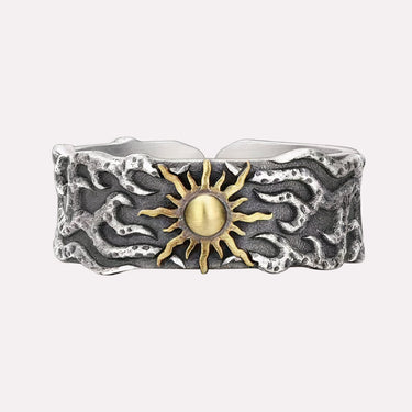 Zainspirowany Heliosem, greckim bogiem, który prowadził swój złoty rydwan po niebie, ten misternie wykonany pierścień oddaje blask i potęgę wiecznego słońca. W jego centrum lśni promieniste, złote słońce, osadzone na surowej obrączce, która przywołuje ognistą energię rozchodzących się promieni.
